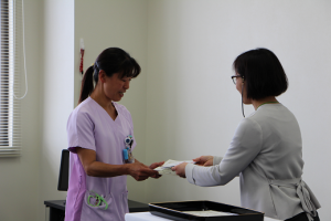 理事長よりひとりひとりに感謝の言葉を掛けながら