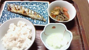 秋刀魚の塩焼きに、大根おろしと煮物を添えて…。